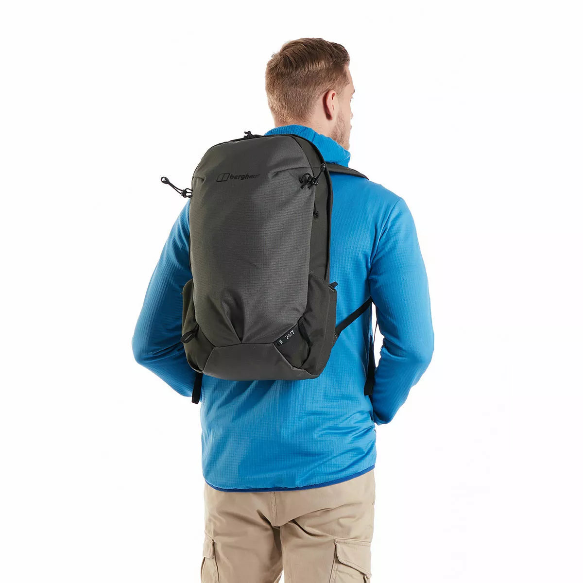 Versatility is at the core of the Berghaus 24/7 25L Backpack. Made with a durable and water-resistant recycled material, it offers up to 25 litres of capacity for everything from your dailly commuting essentials to weekend adventure needs. Made with a ventilated back system, alongside padded adjustable straps and a sternum strap, you can rely on carrying comfort, while a roomy interior with a laptop sleeve ensures there is ample space for gear and more.Â