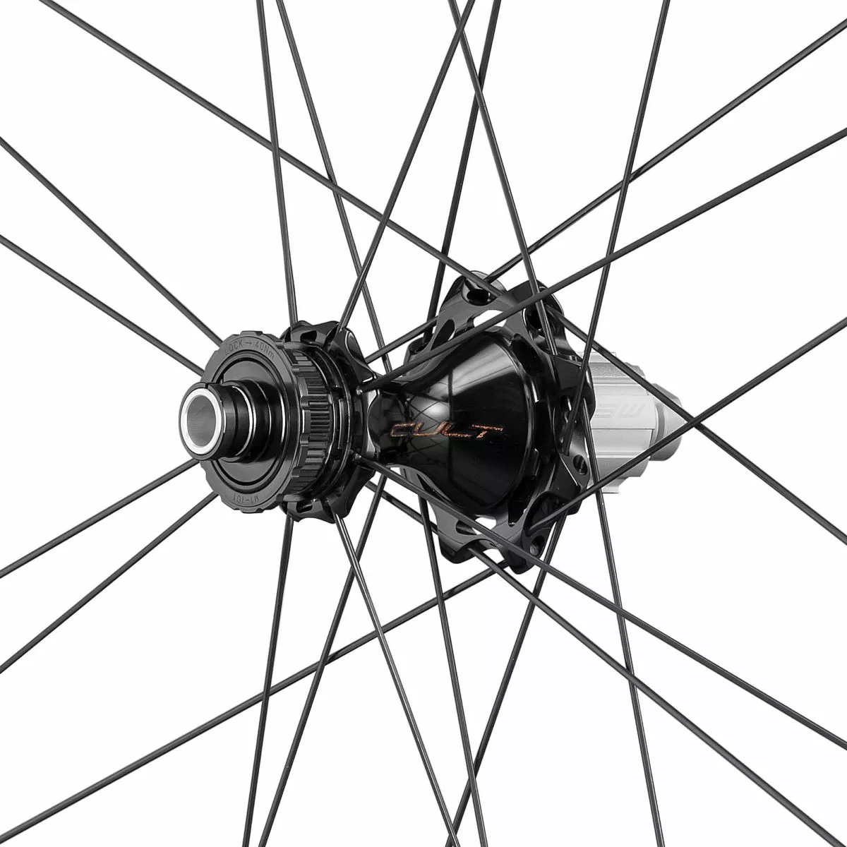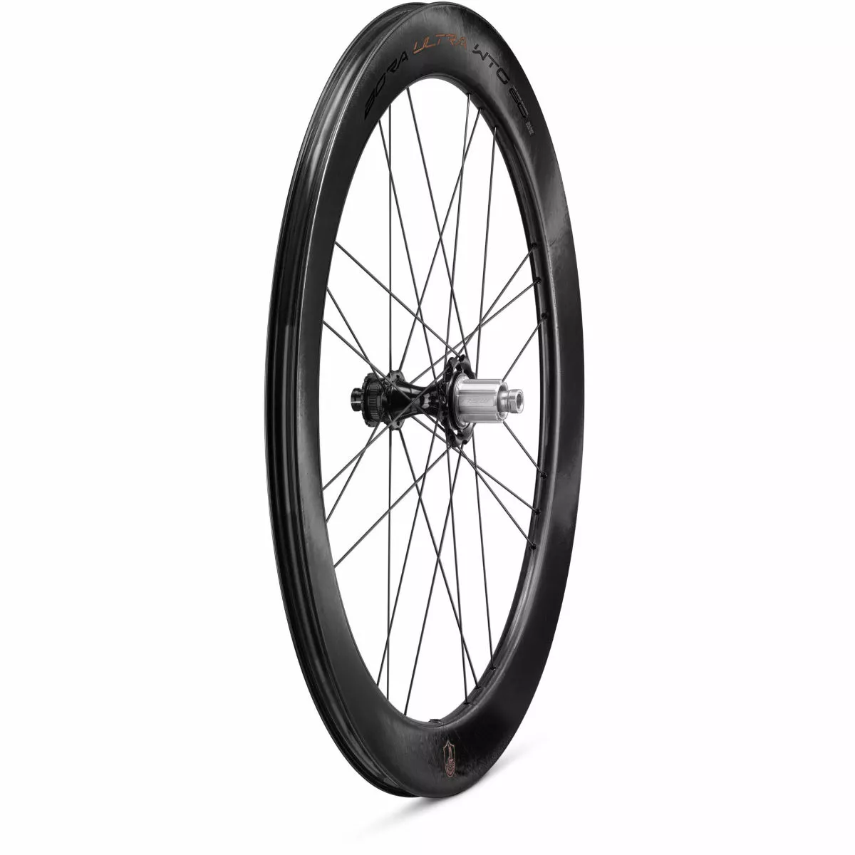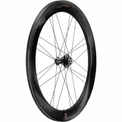 Designed for pure speed, this road bike wheelset features two unidirectional high-strength carbon fibre rims that deliver fantastic stiffness and strength combined with all the best of Campagnolo technology. A wheelset that can transform the output of the most powerful riders into victories, it tips the scale at only 1515g and thanks to its in-house carbon manufacturing it gives riders an exceptional strength to weight ratio when both training and racing. Coming equipped with a 60mm rim profile height, this model’s deep design cuts through the wind and provides excellent aerodynamics. With disc brake compatibility and rim solutions including 2-Way Fit and Aero Mo-Mag technologies as well as 360° improvements, it offers a reduced weight, fast-rolling, higher reactivity, better handling alongside an updated finish with eye-catching graphics that really makes Ultra stand out from the crowd.