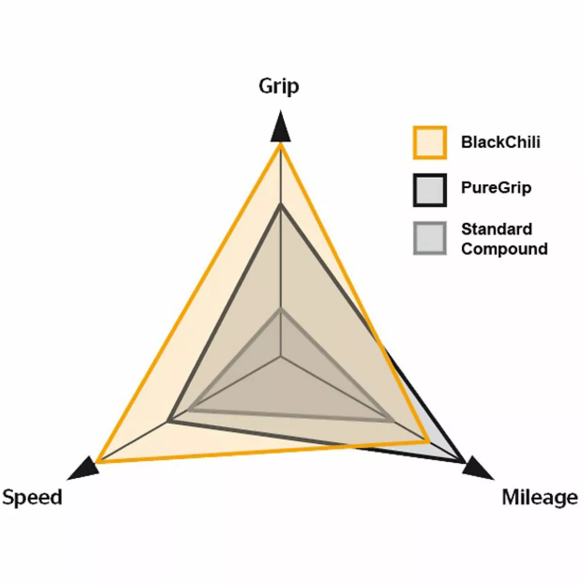 BlackChili compound: It’s all about how you mix it With Continental’s unique tread compound, which is produced only in Germany. Continental has revolutionised the sport of cycling. With the legendary BlackChili Compound they have answered the eternal question of the best balance of grip and rolling resistance for cycling. Regular test wins confirm the measurable and noticeable advantages for the cyclist, established in the laboratory and on the road. The latest polymers, as well as specially developed carbon black particles and filler materials, guarantee unique performance