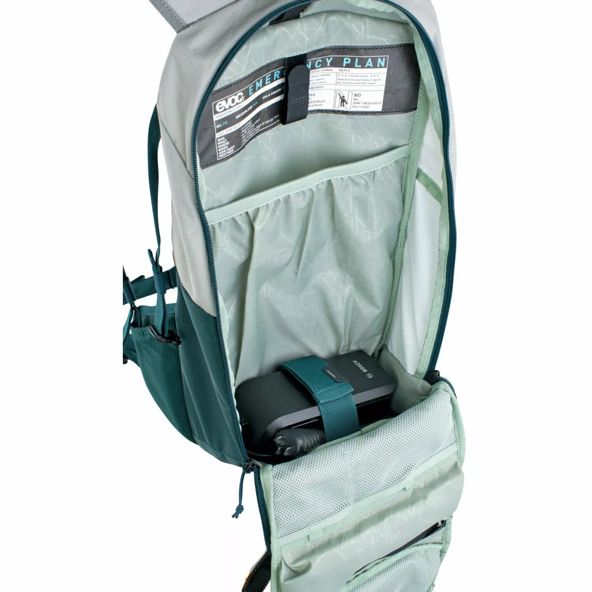 Packed full of clever storage features the pack includes a strap attachment system for secure charger storage, plus a separate compartment for control display.