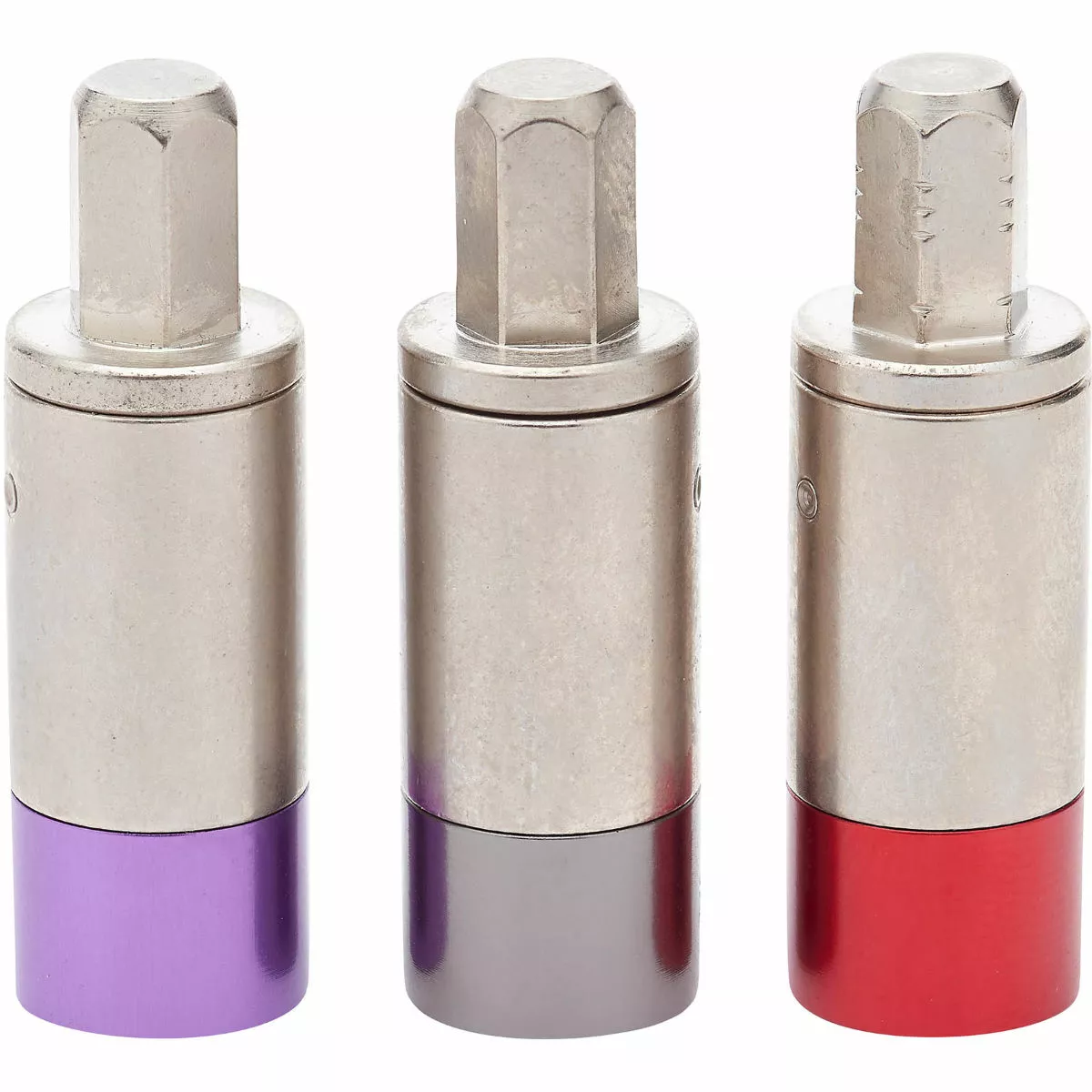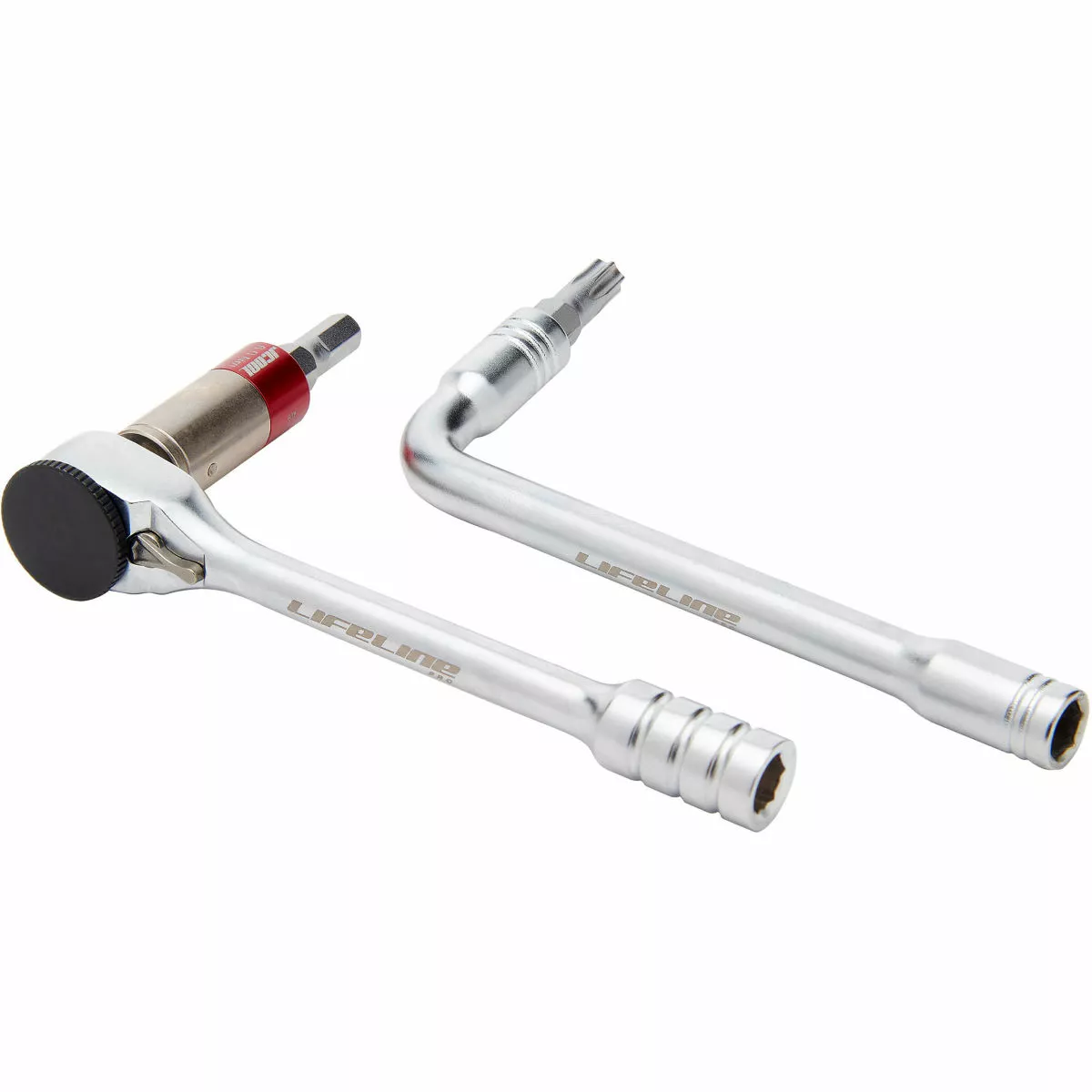 All tools and tool bits come in a handy roll-up sleeve/saddle pack that lets you conveniently store this Pro Mini Torque Wrench Set under your saddle. There’s even room to attach a spare tube! The ratchet tool is easy to use, just connect the required preset torque sleeve and tool bit and tighten. The tool bit will remain stationary once your desired Nm force is achieved, meaning you cannot over tighten the bolt. The double-ended L-bar lets you have two tool bits in one convenient place as you switch between tasks.