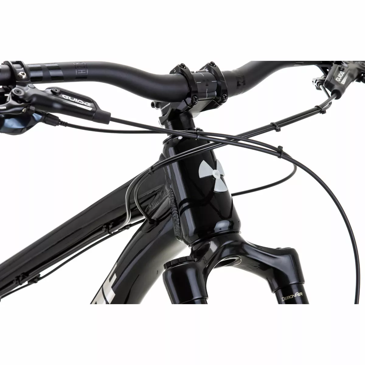 Frame: Nukeproof Scout 275, custom triple butted hydro-formed Alloy, internal cable routing for dropper seat posts, ISCG 05 mount, threaded 73mm BB, Boost 148mm rear axle spacing, includes 3D Contoured Rubber Frame Protection for Down Tube, Seat Stay and Chain Stay