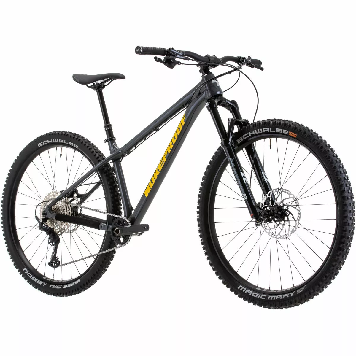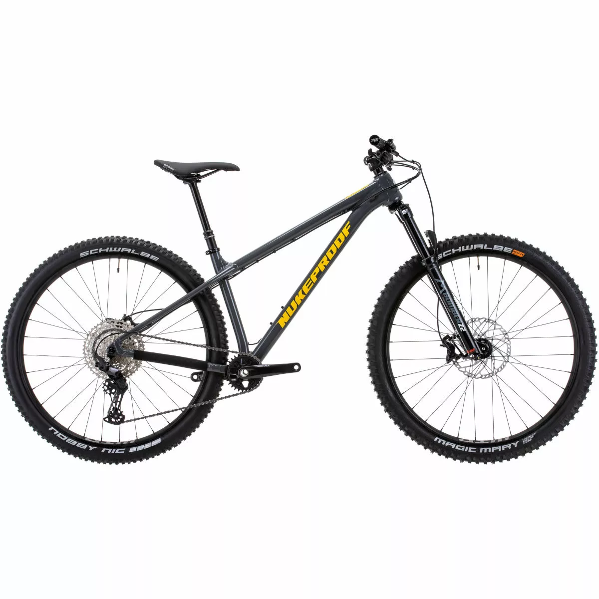 The Scout 290 Comp features an agile, durable and lightweight alloy frame and 29″ (29er) wheels. Nukeproof has kitted this Comp model out with 130mm-travel Marzocchi Bomber Z2 suspension forks that soak up bumps and knocks from the terrain while ensuring you experience outstanding front-wheel traction. It is also equipped with a Shimano Deore 12-Speed groupset that includes SRAM hydraulic disc brakes and a wide-ranging Sunrace 10-51T cassette, offering you exceptional all-weather stopping power and smooth and fast-shifting gear performance. It’s also fitted with Tubeless Ready Nukeproof Neutron wheels wrapped in Addix compound Schwalbe Magic Mary and Nobby Nic tyres.