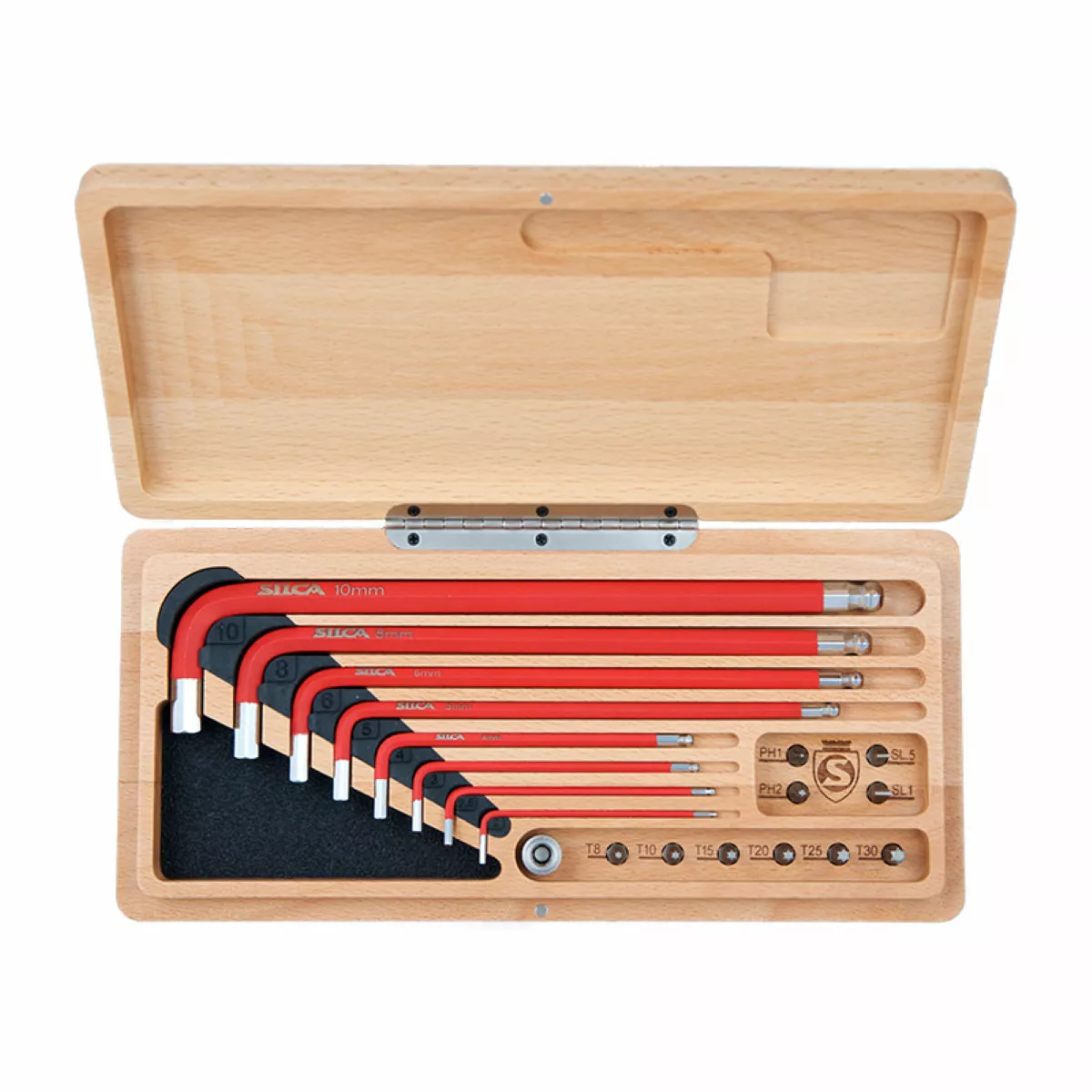 The Silca HX-One Essential Kit is one of the most functionally efficient and aesthetically pleasing hex key sets on the market. Enclosed in a CNC machined Beechwood box each tool rests in its own slot that clicks into place and is accessible with one hand. The CNC box made from sustainable Beechwood is hand sanded and finished before receiving the stainless steel Silca shield and is just the icing on the cake for the beauty that is the HX-One Kit.