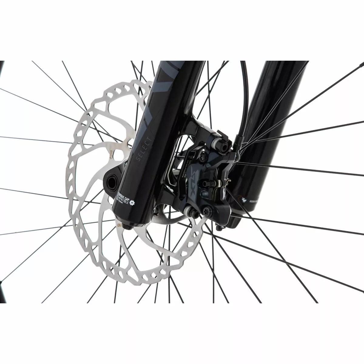 F/brake Set: Shimano SLX M7120, Lever: BL-M7100, Caliper: BR-M7120, Post Mount, Four Piston Caliper