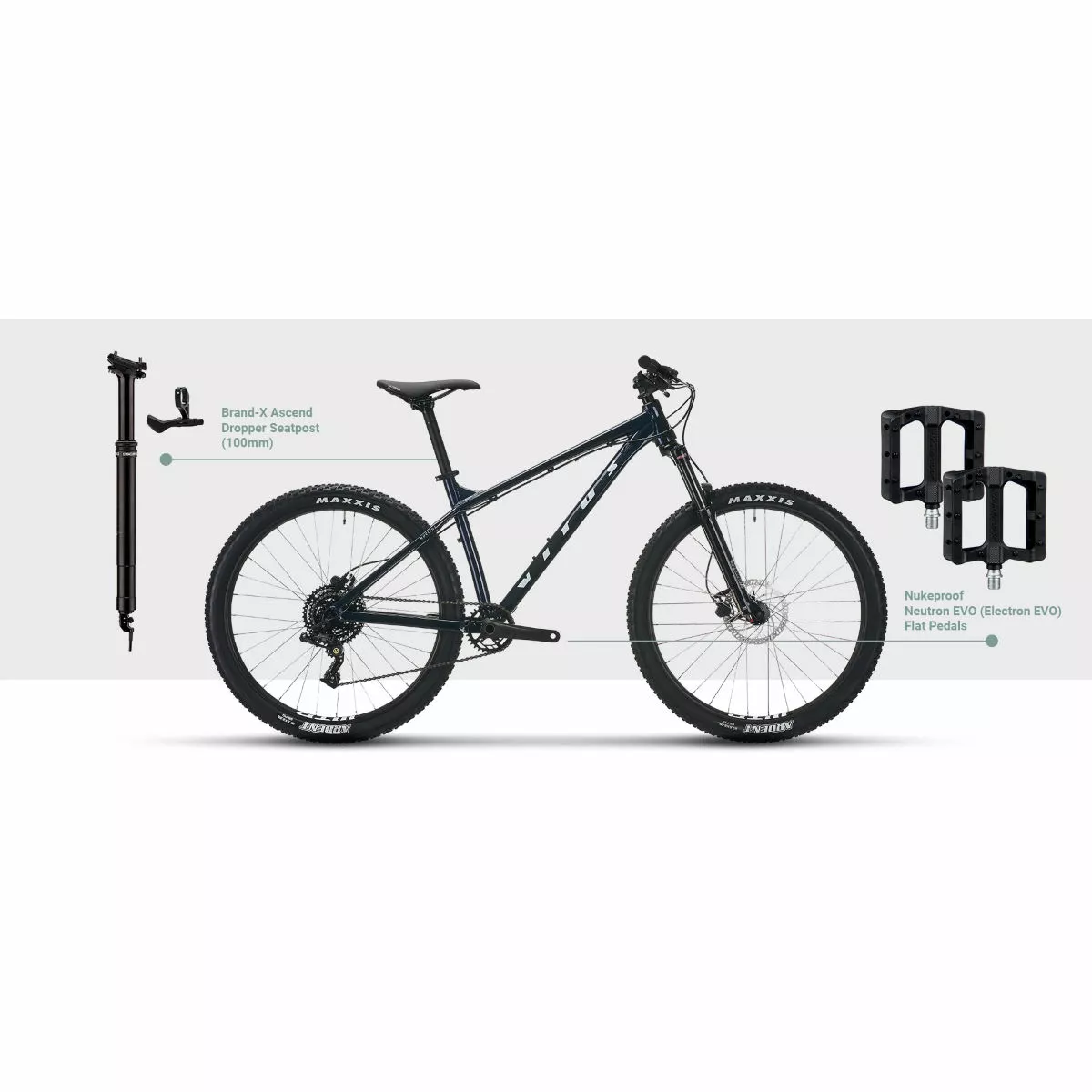 The components include Clarks M2 hydraulic disc brakes that are responsive no matter the conditions, a terrain-smoothing SR Suntour XCR32 Air LOR DS 120mm Travel air-sprung suspension fork and the no-fuss Box Four drivetrain that ensures the gear shifting is fast and light. With an award-winning aluminium frame at its core, this bundle raises the stakes adding a Brand-X Ascend Dropper Seat Post (fully fitted) for on-the-fly saddle height adjustments, helping you always find the right position on the bike and grippy Nukeproof Neutron EVO Pedals that’ll keep your feet firmly planted in place. Key upgrades that’ll help grow your confidence on the bike and keep your mountain biking skills rolling forward.
