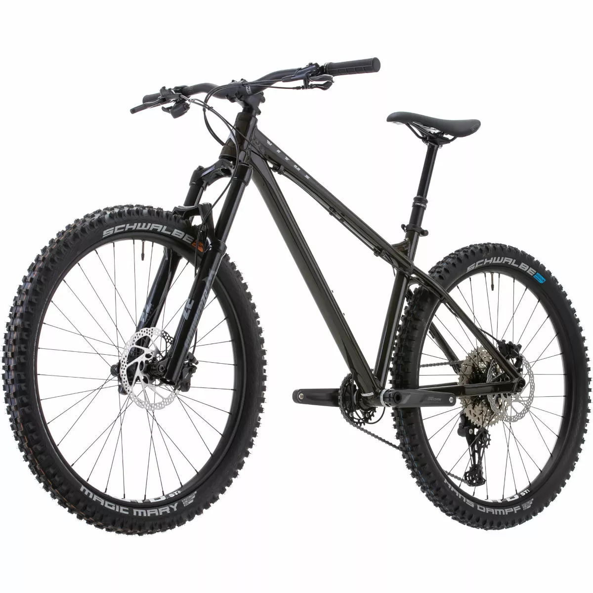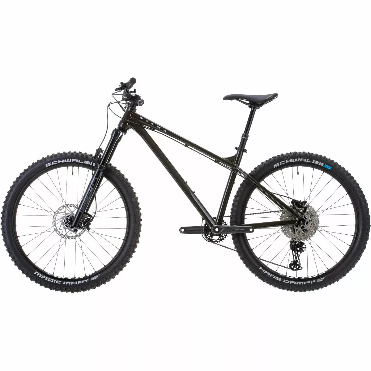 The Sentier 27 VR features a durable and lightweight aluminium frame with low, long and slack geometry, giving you a superb balance of agility, control and all-day riding comfort. Engineered to offer excellent performance anywhere in the hills, this MTB is armed with 130mm-travel Marzocchi Bomber Z2 suspension forks and a Shimano Deore 1×11-Speed groupset that includes an 11-51 Tooth wide-range cassette and hydraulic disc brakes. It also rolls upon Tubeless Ready WTB i30 TCS 2.0 rims wrapped in fast-rolling and high-grip Schwalbe Magic Mary and Hans Dampf tyres.