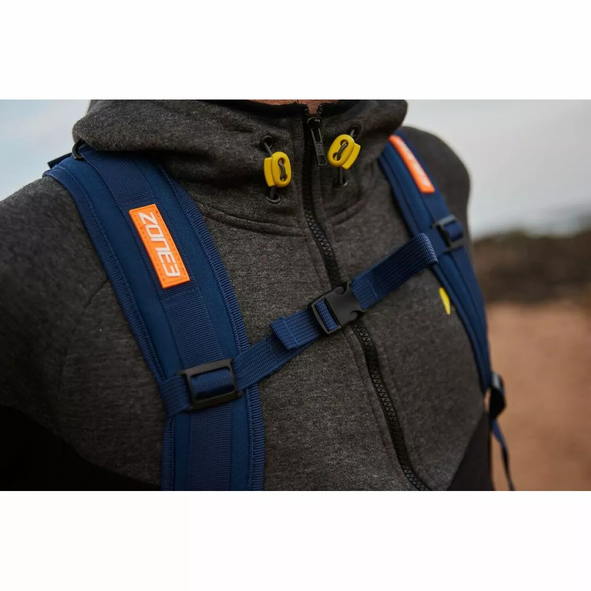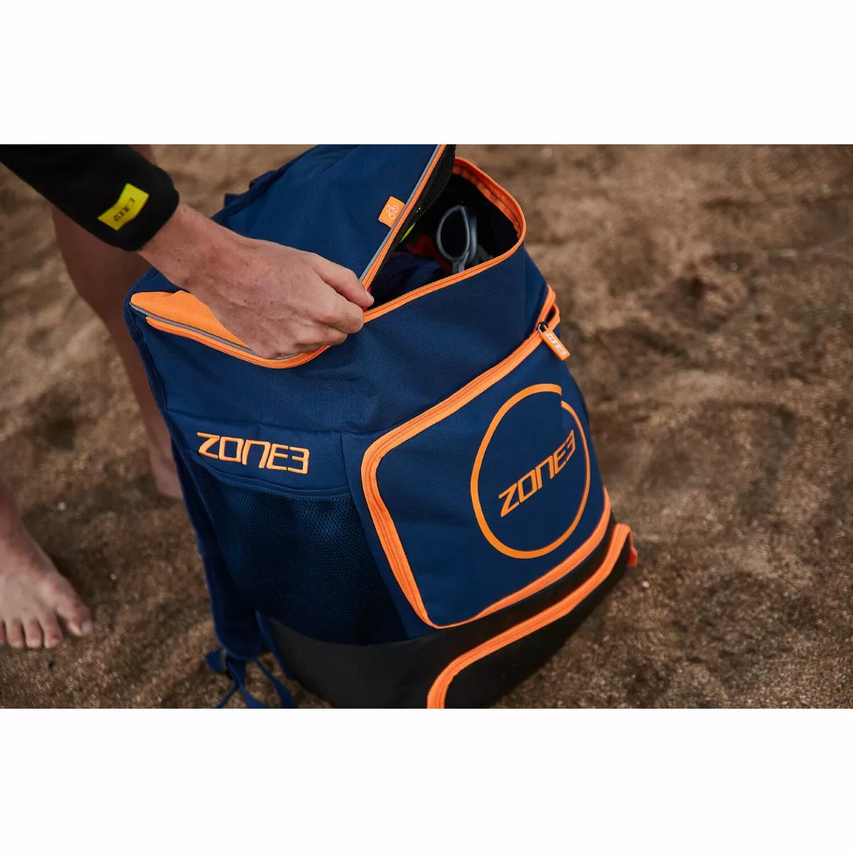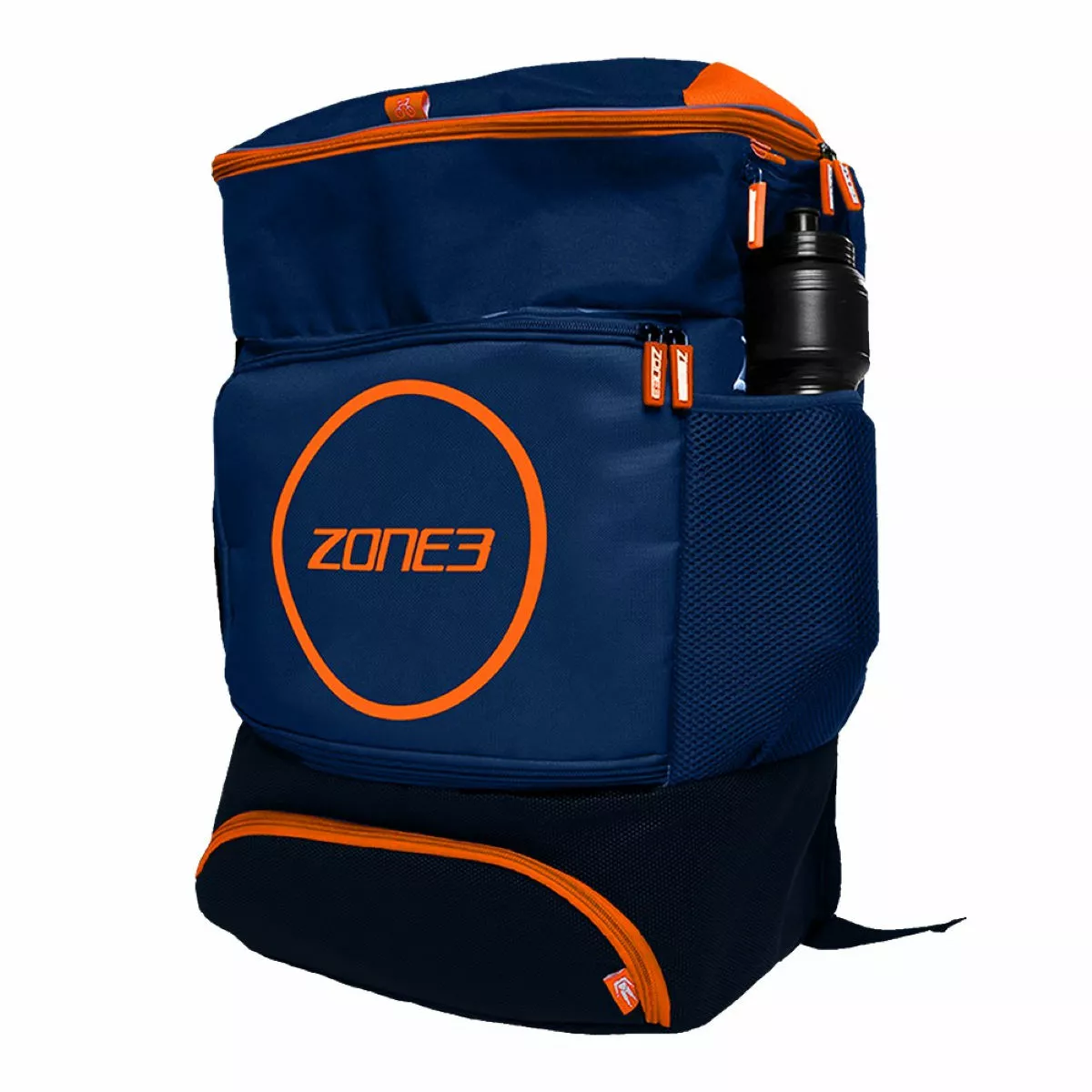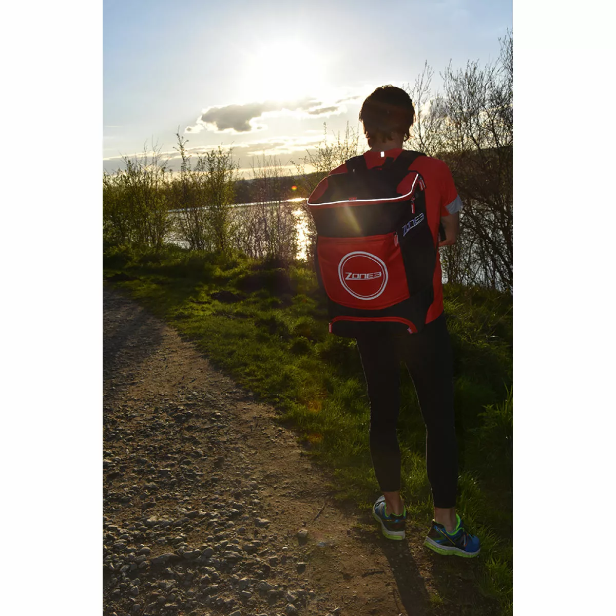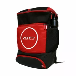 Zone3 have made a number of exciting changes to their transition backpack and it’s now packed full of new features vs the ’18 model making it extremely functional and more comfortable than ever. The backpack has been designed with three main compartments to help organise your race kit. Within each compartment there are itemised zipped pockets to help keep items separate and easy to find. The bag has been cleverly designed so that each compartment is accessed in a different direction to help maximise space and functionality. Zone3 found that many of the other backpacks on the market were not sturdy enough to stand strong unless the bottom section was being used or if there were no compartments. Zone3 have overcome this problem by tailoring the inner linings between each compartment so they can naturally flow into the compartment below regardless of how full of empty the backpack is. The bottom compartment lining is 100% waterproof and shares the space with the middle compartment. The top compartment lining is a highly flexible and soft mesh material which also can share the space of the middle compartment. This makes for an extremely versatile and functional backpack. Together with the ergonomically designed back panel design, this is set to be one of the most popular triathlon backpacks on the market. Here is a summary of the main features: Bottom Compartment Features: Outside: 100% waterproof and durable exterior material. Inside: Expanding 100% PU coated waterproof lining material with thermo-bonded seams. Suitable for a wetsuit, Tri suit and other small items. Middle Compartment features: Inside: Zipped mesh pocket for goggles and accessories Inside: 100% waterproof removable PVC wallets for small valuable items. Inside: Back of flap features mesh pocket for race numbers and information. Outside: Two large, soft mesh pockets perfect for drinks bottles. Suitable for shoes, clothing, towels, accessories, drinks. Top Compartment features: Inside: Soft mesh lining Inside: Back of flap features mesh pocket for race nutrition. Outside: Reflective piping around the top for improved visibility during low light levels. Outside: A fleeced music device pocket with earphone outlet Outside: Top flap pocket for items which need to be accessed regularly, passports etc. Suitable for helmet or other accessories. Other features: Padded back panel using 3cm thick foam with breathable mesh material casing for comfort and cooling. Padded shoulder straps Chest straps for tighter fit when needed on the move Option to strap helmet on to shoulder straps plastic D-rings during transport. Durable carrying handle. Strong zips with Zone3 branded silicone zip pullers. Zone3 printed and embroidered logos. Height 53cm, width 22 cm and length 34.5cm. The bag has a total capacity of 40 litres. The backpack makes access very easy and allows all your kit to stay very organised thanks to the unique lining materials between the three compartments. It does everything you need without over complicating things. Not too big and not too small, we hope this is the perfect size transition backpack which is lightweight, functional, comfortable and perfect for domestic or overseas races.